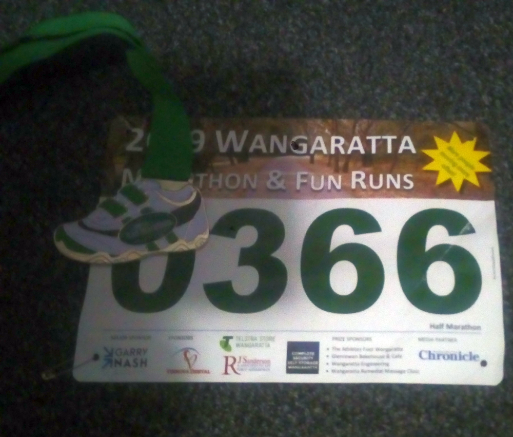 As for the domestic front, it was a return trip to Wangaratta just over 11 days ago to run their half marathon and in so many ways to escape the heat of Central Queensland. Who would have thought that 16 degrees would have been sufficient to see me pull the jacket out of storage! I was a little worried about not waking up in time especially given it’s not the easiest place to get to for someone without a car (3 hours of plane trips, followed by 3 hours on a train, even if said train had snacks on board), yet I was able to get to the start area with plenty of time to spare. The plan was just to take it relatively easy and concentrate on completing the run rather than aim for any specific time, as time on the feet was most important in the whole scheme. The fact that I hadn’t run close to the distance in training was concerning, but with conditions more suitable if not ideal compared to home I was reasonably confident that I would get what I wanted from this event.