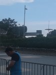 In any case, the MRT trip was smooth enough but for the first time in a while I didn’t wear my race shoes until I got off the train, having to store thongs (OK, flip-flops) in the transparent gear bag. I was switched on enough to do this whilst indoors near the MRT stop, knowing that doing this outside in the warmth would be undoubtedly tougher for the feet to handle. With all the gear including blue zinc applied, some happy snaps taken and a shorter less intense warm up undertaken in light of the failings post warm ups in Melbourne and to a lesser extent Hobart, it was time to wander through the pit garage of fate and onto the track for a date with destiny.